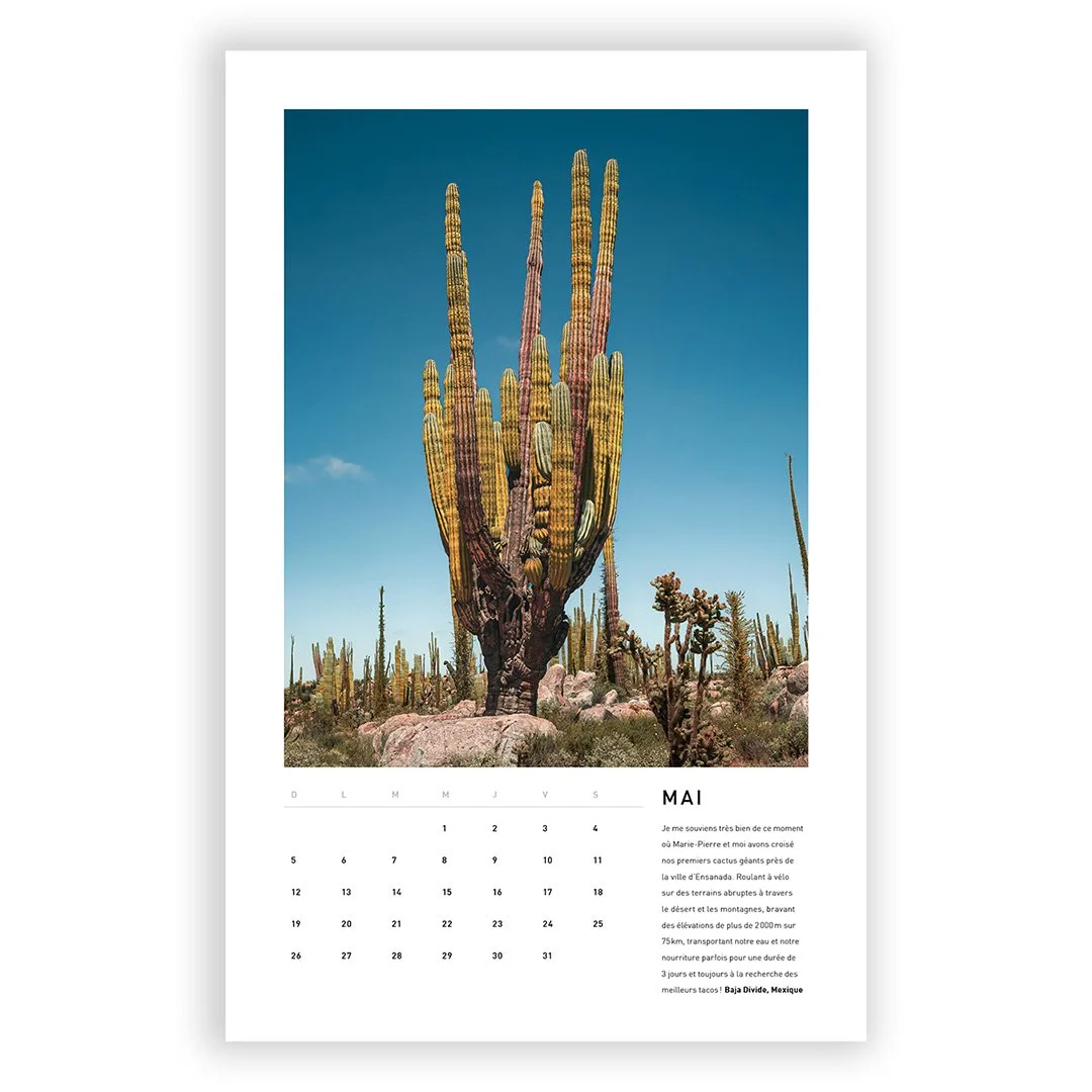 *Les photos dans le calendrier sont aussi assez grandes pour vous faire des affiches 8,5” X 11” quand l’année sera terminée.